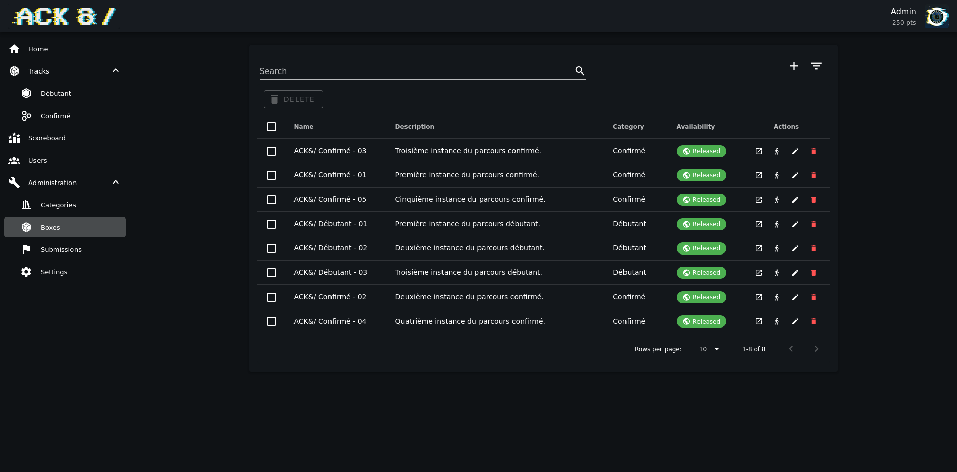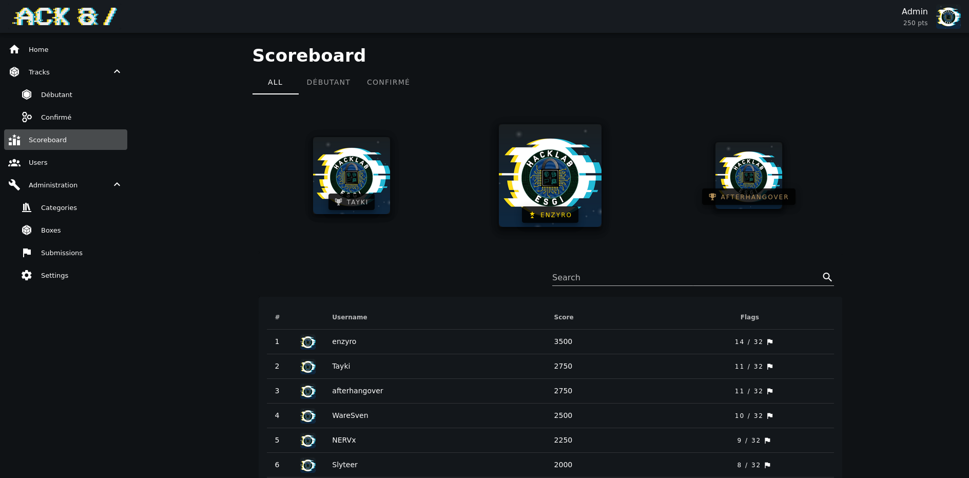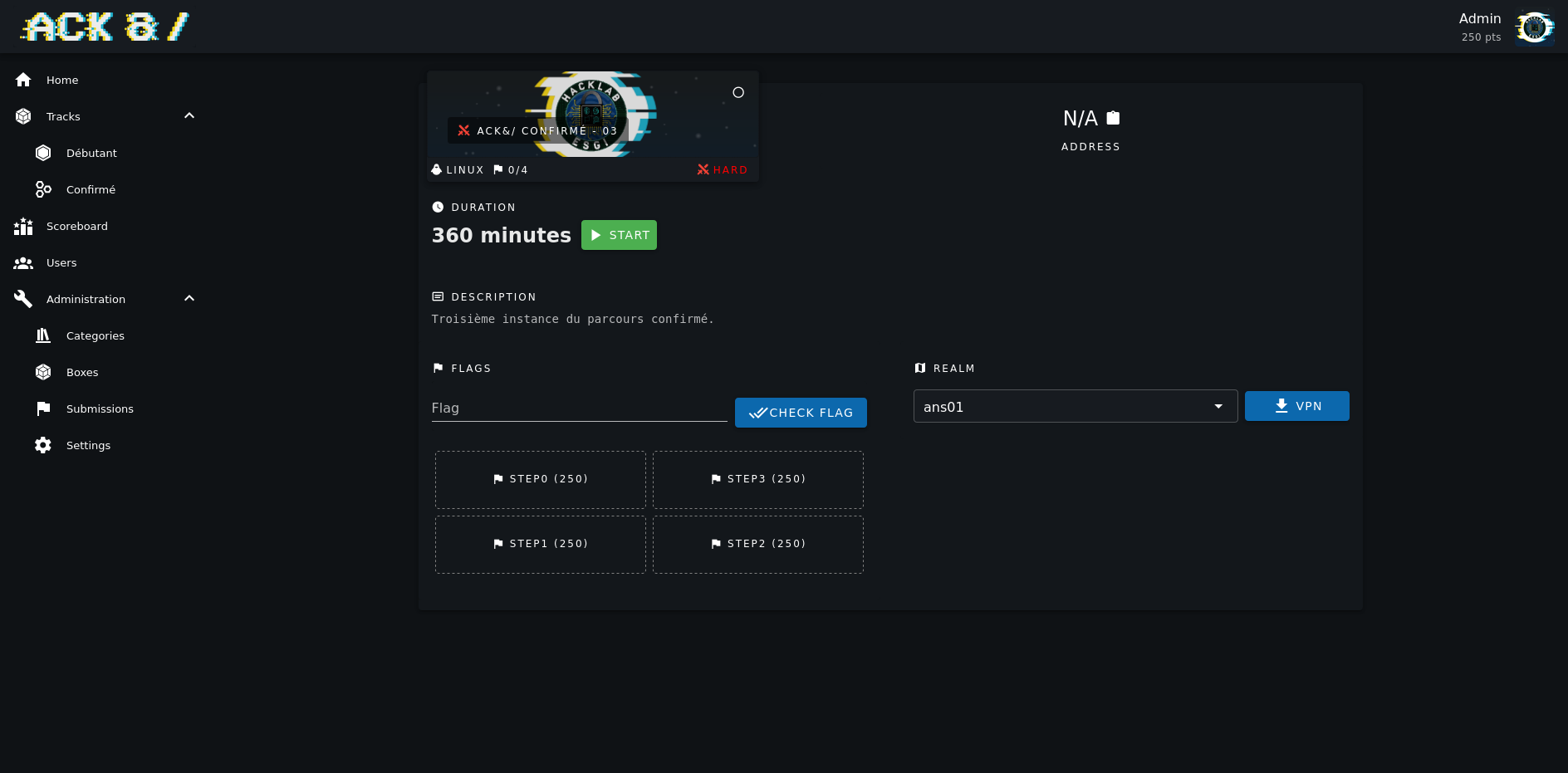 Les captures de démo ont été réalisés avec le thème du CTF ACK&/.